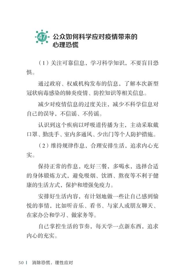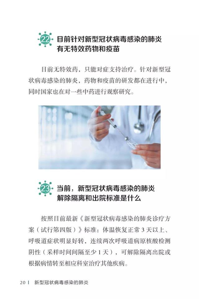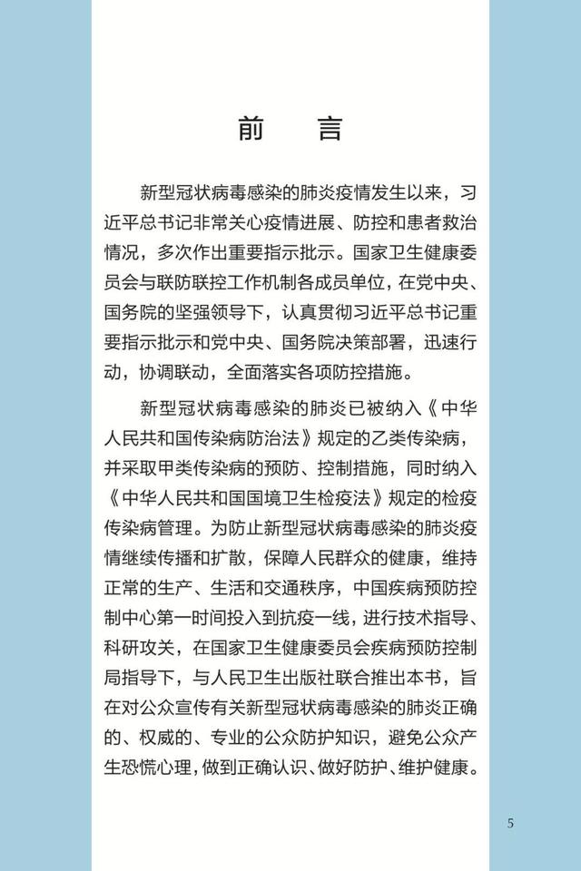 此书聚焦公众个人与家庭防护、居家医学观察、理性就医、心理疏导等防治细节,通过问答形式解读新型冠状病毒感染的肺炎有关问题疑惑,引导公众正确认识,积极做到防治结合、科学防护、消除恐慌、理性应对。此书包括图书、电子书、网络版读物等多种形式,第一批图书已紧急送往武汉抗击疫情第一线,电子书、网络版读物在学习强国、健康中国、人卫健康、掌阅等多个网络平台、微信公众号公益传播,并为全国各地提供可印制的PDF版本。