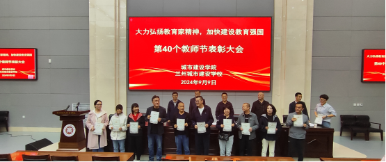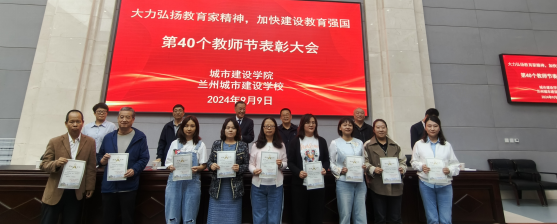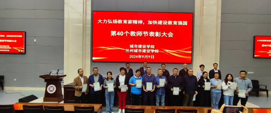 城建学院于9月9日举办了“大力弘扬教育家精神,加快建设教育强国”暨庆祝第四十个教师节表彰大会。党总支委员、副校长付开虎,副校长李建明宣读了表彰文件,向辛勤耕耘、默默奉献的56名优秀教师、优秀班主任(辅导员)、先进工作者和42名坚守教育三十载、肩负班主任十五年及以上的教育工作者致以崇高的敬意。