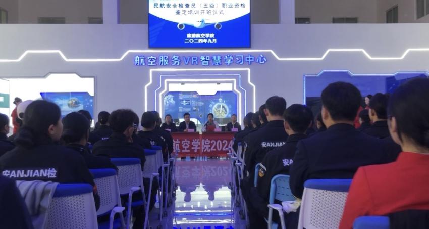 9月9日下午,旅游航空学院航空实训基地举行了2024年民航安全检查员(五级)职业技能鉴定培训开班仪式。开班仪式上,旅游航空学院院长郑西灵向与会人员致辞,强调此次培训旨在培养一批具有扎实的专业知识、熟练的操作技能、良好的职业道德和团队合作精神的民航安检人才。未来一个月,学员们将接受系统而全面的培训,包括民航安全法规解读、安检设备操作、应急处置演练等多个模块的学习。