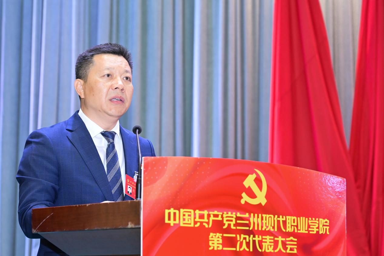 李成宏强调,学院将以此次党代会为新的起点,坚持和加强党对各项工作的全面领导,凝聚广大师生的智慧与力量,增强投身教育强国建设的责任感和使命感,以服务学生成长为初心,以促进内涵建设为重心,以提升人才培养质量为核心,全力落实“强省会”行动和市委“1139”工作部署,持续做好“优队伍、精管理、重技能、强文化、促内涵”五篇文章,不断加快学院“双高校”和职业本科大学建设步伐,以更加昂扬的斗志、更加务实的作风、更加有力的举措,再接再厉、勇毅前行,共同谱写兰州现代职业学院高质量发展的新篇章,为建设新时代美丽兰州贡献职教力量。