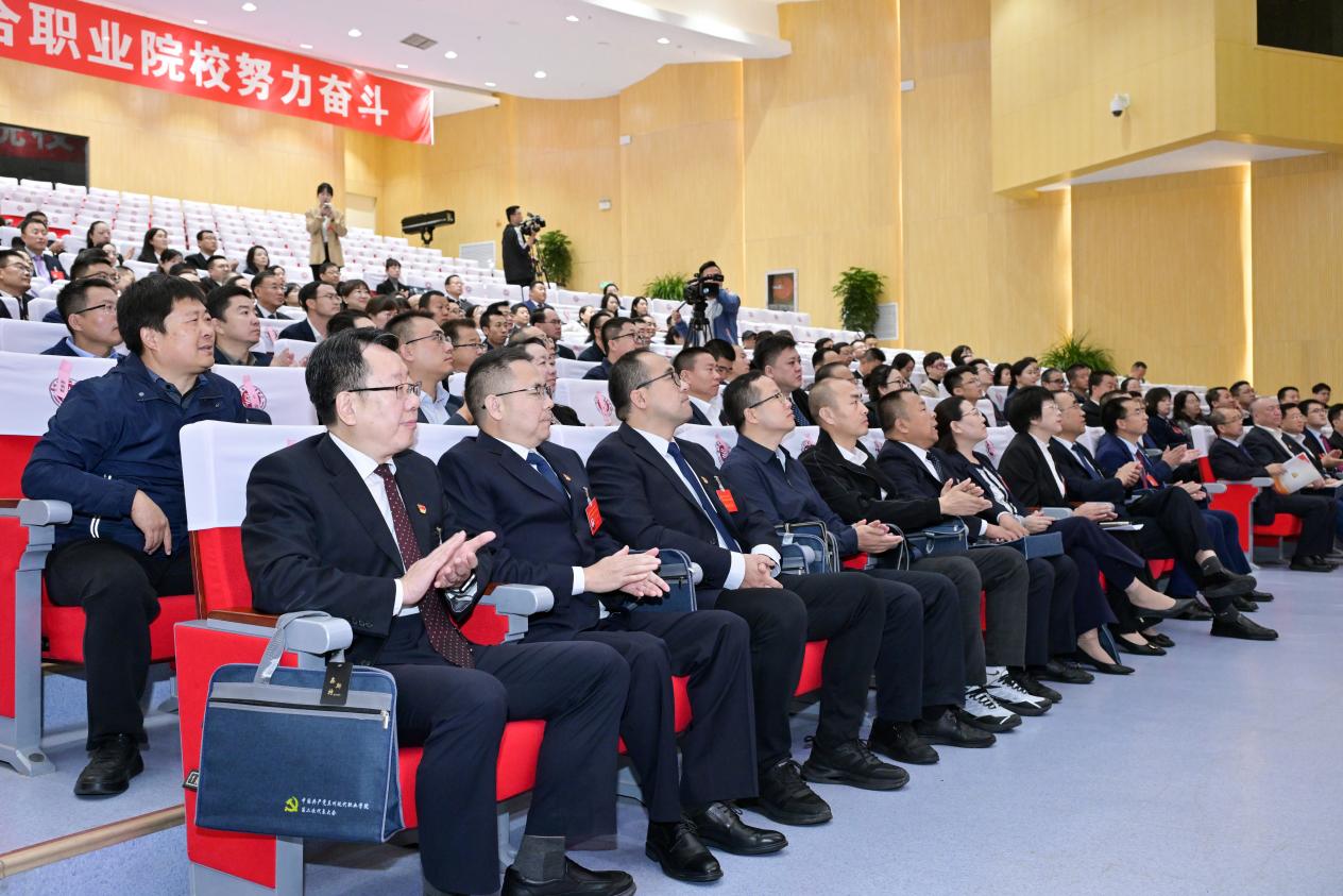 省委教育工委党建处孟胜旺副处长代表省委教育工委对大会召开表示热烈祝贺,对学院建校8年来,从小到大、从弱到强的特色办学之路和改革发展所取得的成绩给予了充分肯定,对学院进一步加强党的领导,坚决贯彻执行党委领导下的校长负责制,坚持不懈用习近平新时代中国特色社会主义思想铸魂育人,抢抓机遇,乘势而上,主动融入区域经济社会发展,全面提升技术技能人才培养水平,着力助推全省经济社会发展提出了具体要求。