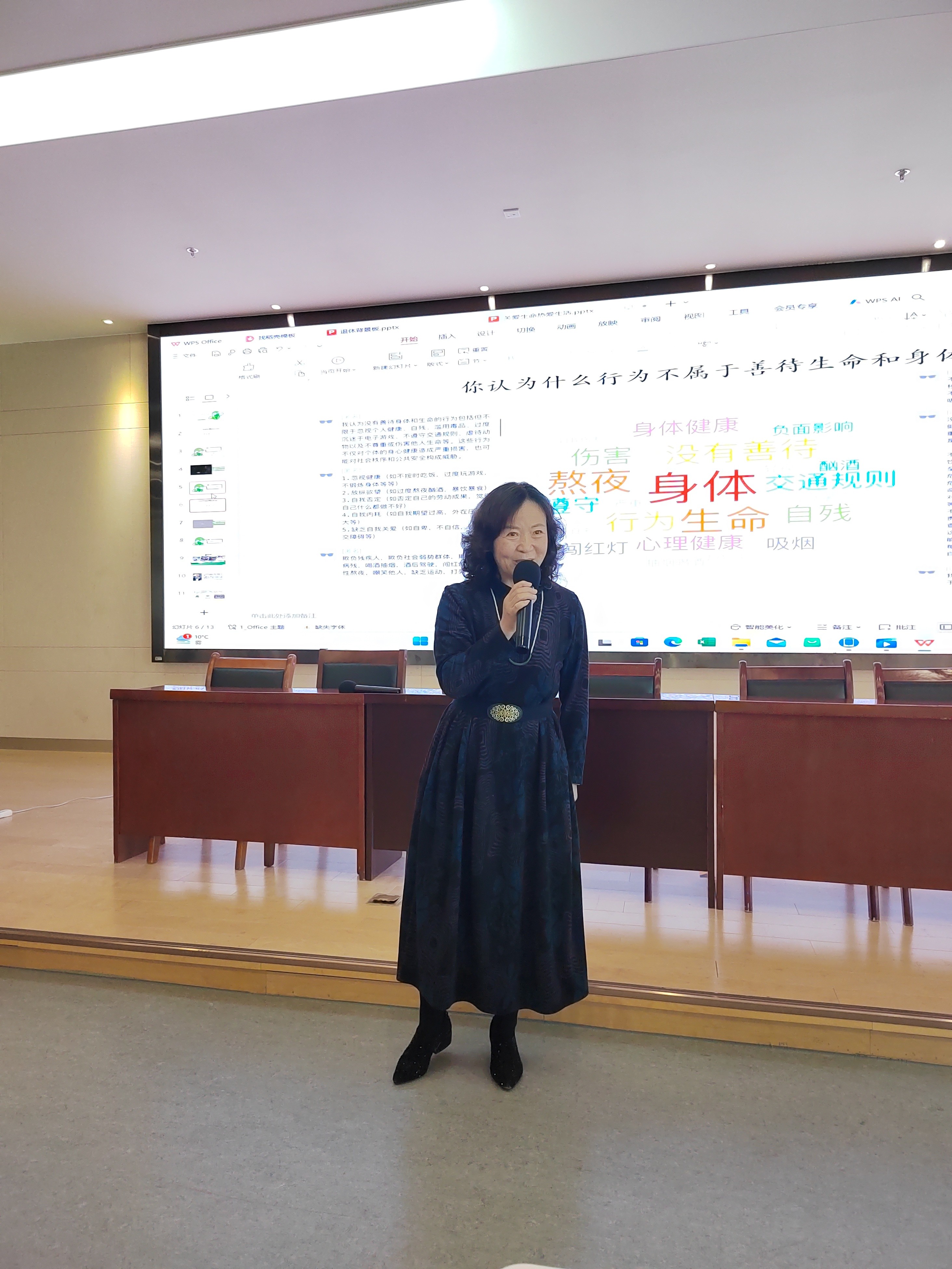 讲课在热烈的掌声中结束。随后,学院党委委员、副院长杨巧玉详细介绍了陈建菊老师的工作经历和对学院发展作出的突出贡献,表达了对陈建菊老师的诚挚祝福,希望她继续关注学校发展,常回家看看,也希望广大青年教师能够从她身上汲取精神力量,为学校教育事业发展贡献青春力量。