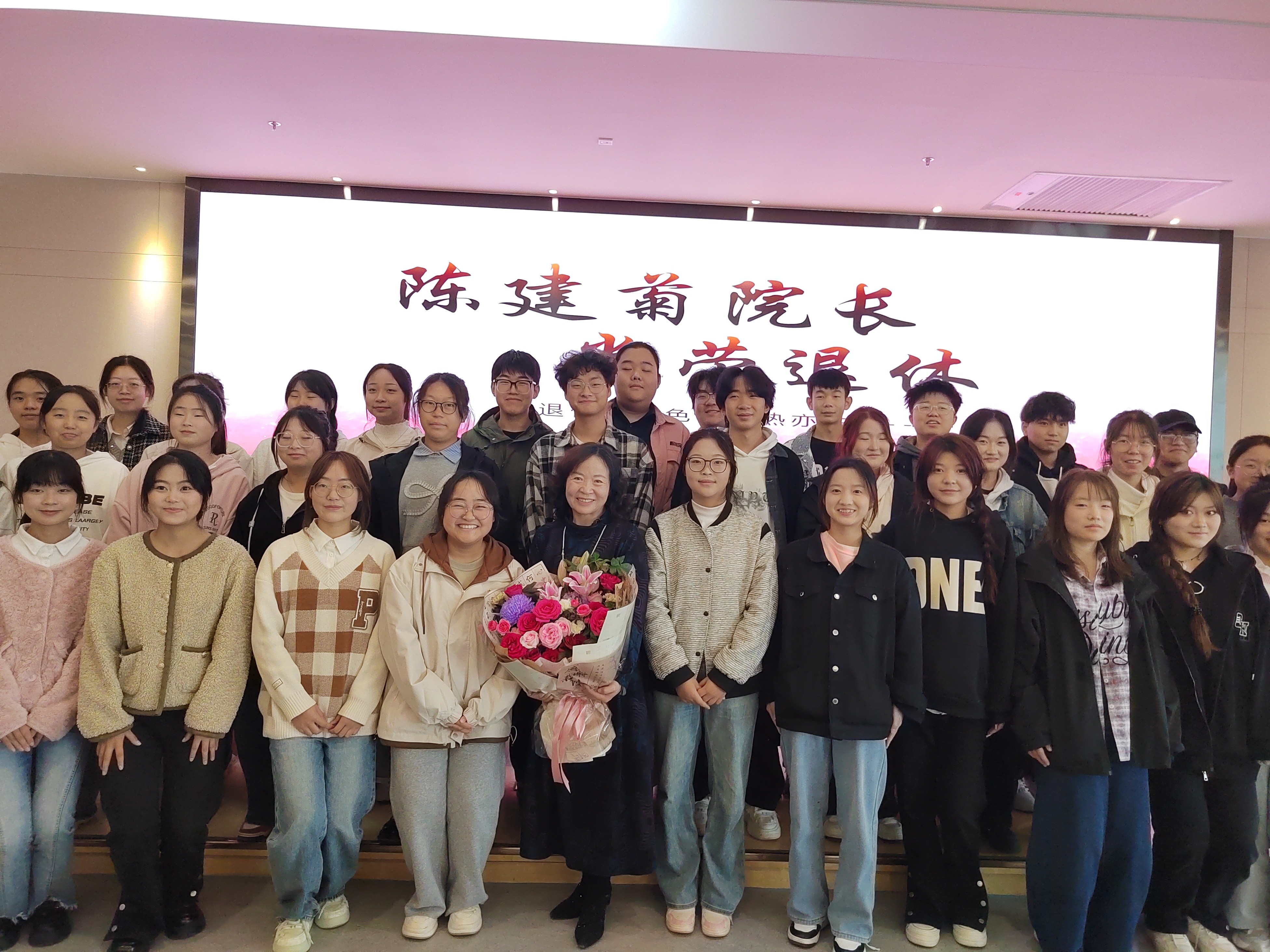 莫道桑榆晚,为霞尚满天。为致敬荣休教师,弘扬教育家精神,传承立德树人使命,充分体现学院对荣休教师的关心和关爱,增强教师集体荣誉感和归属感,激励新一代青年教师不忘初心、赓续奋斗,同时也号召二级学院认真做好退休教师的荣退工作,教师工作部和学院工会举办荣休教师陈建菊“最后一节课”活动。