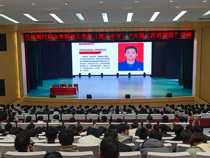 仪式结束后,兰石集团铣工特级操作师、国家级铣工技能大师工作室负责人—顾柄旌为“兰石订单班”同学们开展了“开班第一课”—“大国工匠进校园”专题报告。