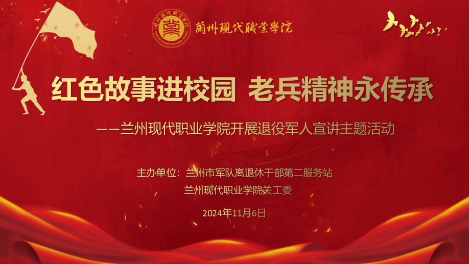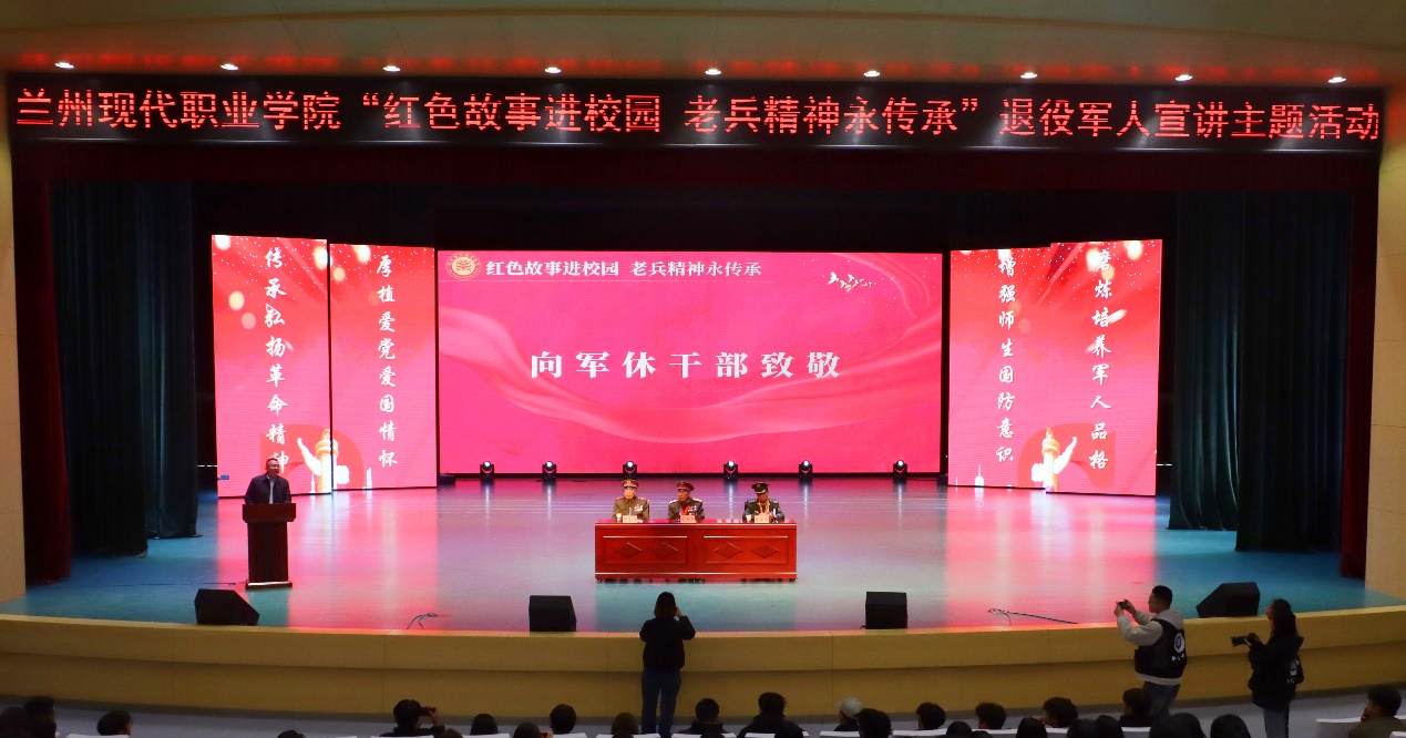 为进一步培养全院师生的爱国主义情怀和坚韧意志,让青年学生近距离感受退役军人坚韧意志和昂扬风采,激励全院师生在新时代新征程中积极进取、砥砺前行,11月6日上午,学院关工委联合兰州市军队离退休干部第二服务站共同举办了“红色故事进校园老兵精神永传承”退役军人宣讲主题活动。活动邀请原甘肃省军区政治部副主任齐培礼、原武警兰州市支队副政委蔡忠宝、原甘肃省军区焦家湾干休所卫生所所长张子库三名老战士作为主讲嘉宾,为700余名师生带来了一场生动感人的宣讲。