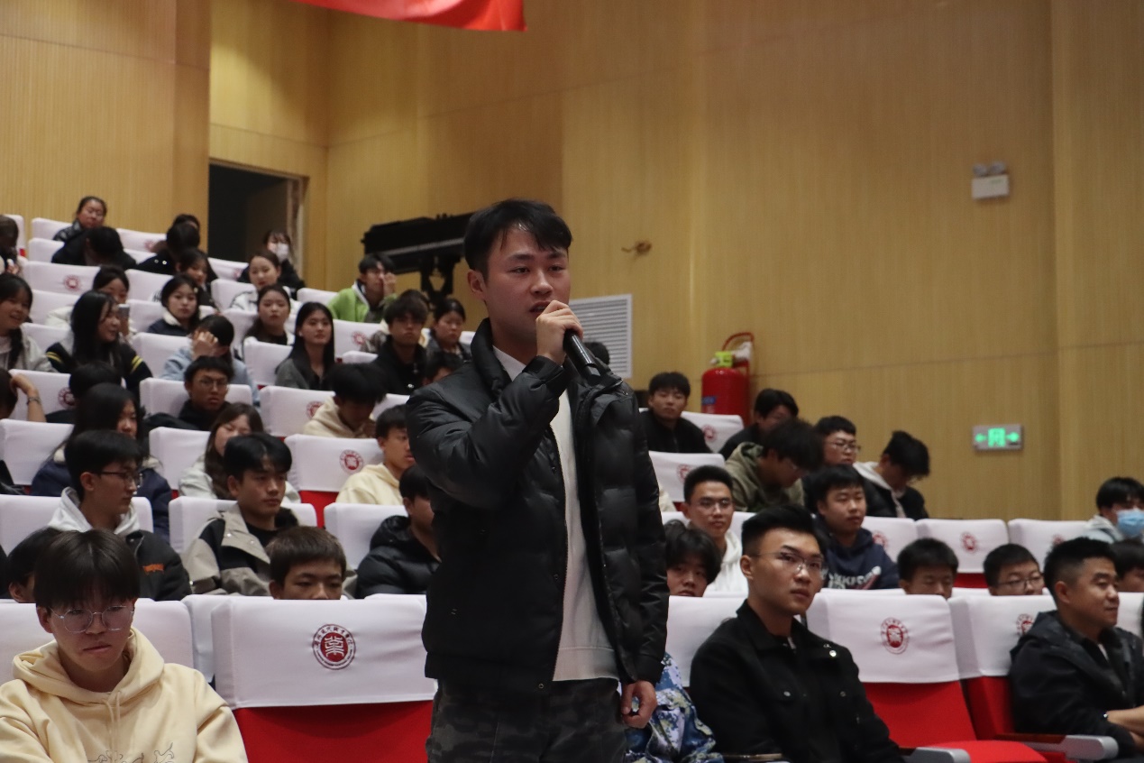 宣讲结束后,现场学生代表怀着崇敬的心情向老前辈们提问,老前辈们耐心细致地回答了同学们的问题。学生代表向“红色宣讲团”的成员们敬献了鲜花,表达了对“老兵”的崇高敬意。老前辈们寄语青年学生们要肩负时代使命,积极响应国家号召,踊跃报名参军,以实际行动投身国防事业。