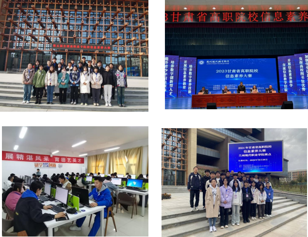 2023年我院成功承办了甘肃省高等职业院校信息素养大赛,我院15名学生参加了省赛,获得一等奖1名,二等奖5名,三等奖5名的好成绩,同时学院获得最佳组织奖,图书馆周永花、郭玫获得先进工作者称号。2024年10月,学院再获佳绩,获得省赛优秀组织奖,郭玫老师获得先进工作者称号,理工学院石俊、徐峰同学进入国赛。