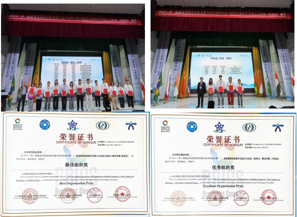 近日,2024“一带一路”暨金砖国家技能发展与技术创新大赛首届建筑设备数字化施工与安装(给排水)赛项在浙江建设职业技术学院落下帷幕,来自全国各地的129支高校组参赛队和21支中职组参赛队同台竞技。经过激烈角逐,由常江、马忠贤指导的参赛队分别斩获高校组一等奖(金奖)和中职组二等奖(银奖),兰州现代职业学院获评最佳组织奖,兰州城市建设学校获评优秀组织奖。
