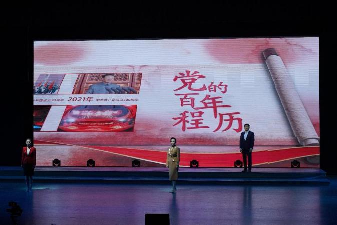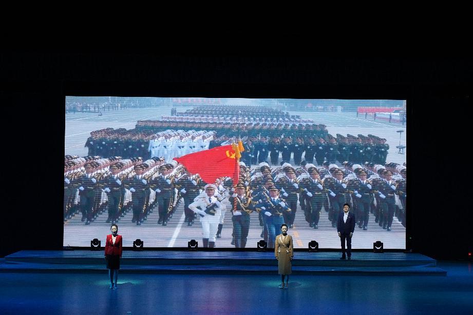 甘肃省话剧院的专业表演艺术家们精湛的朗诵和表演,辅以大气磅礴感人至深的音乐音响以及舞美灯光设计,将共产党人在国家危难和奋斗发展道路上的感人事迹娓娓道来。