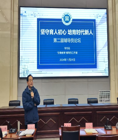 为深入学习贯彻党的二十大精神、二十届三中全会精神和全国教育大会精神,促进辅导员队伍职业能力和综合素养的全面提升,推动辅导员队伍职业化、专业化发展。11月29日,我院举办第二届辅导员论坛,学院副院长苏瑞琴,各二级学院分管学生工作副院长、学生工作办公室负责人及全体专兼职辅导员,共计130余人参加了此次论坛。论坛由学生处处长冯蓉主持。
