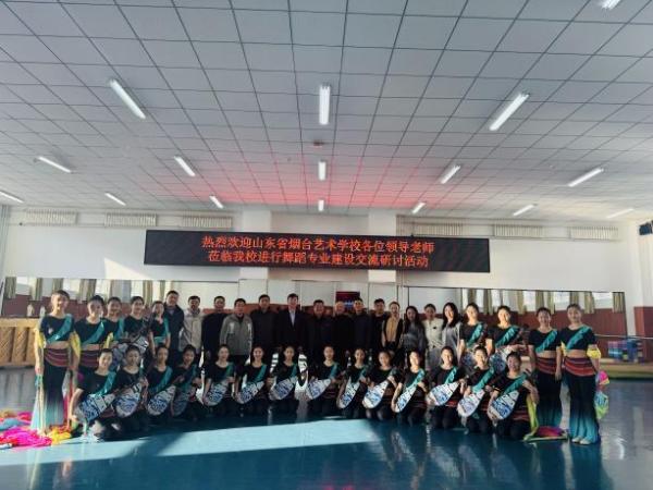近日,山东省烟台艺术学校党委书记赵军一行6人访问教育艺术学院,双方就中职专业建设情况展开深入交流研讨。会上,双方围绕学校发展理念、专业设置优化、人才培养模式革新、教学管理精细化策略及师资队伍培育与建设等议题展开热烈讨论。在交流过程中,双方分享了各自在专业建设、人才培养等方面的经验成果,并参观了兰州女子中专舞蹈专业学生实训情况,就实训室建设理念、管理经验等进行了充分交流。