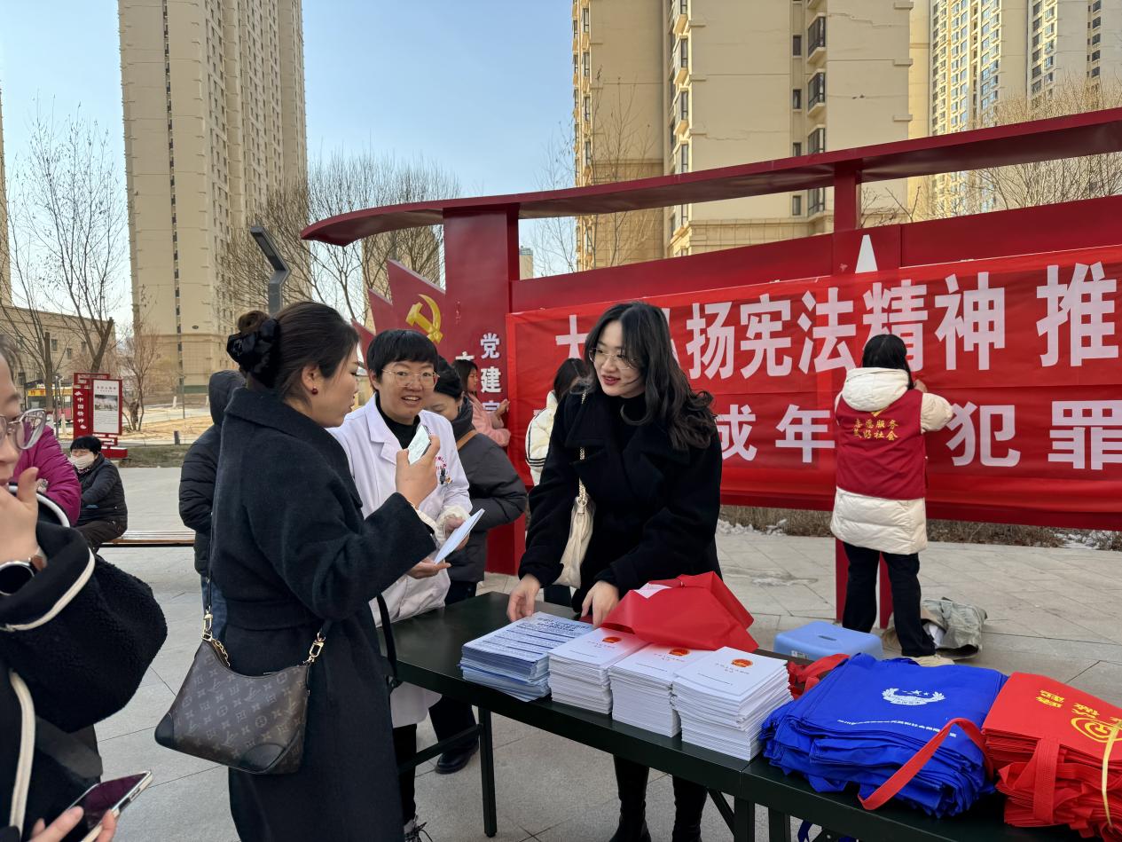 今天是第十一个国家宪法日,在兰州现代职业学院党委的正确领导下,以习近平新时代中国特色社会主义思想特别是习近平法治思想、党的二十届三中全会精神为指导,兰州现代职业学院机关党委、兰州现代职业学院团委联合辖区文曲湖社区在景园小区开展了“加强宪法宣传教育 推动党支部联建成效”暨“关爱行动”志愿服务活动。
