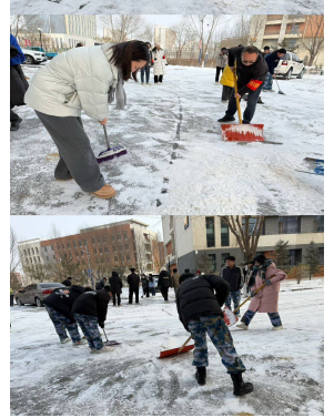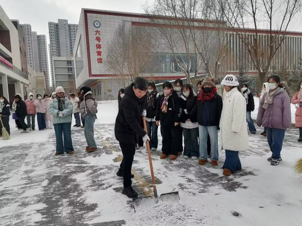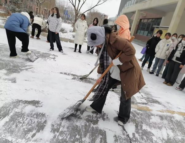 12月11日,教育艺术学院响应学院号召,组织学生开展清扫积雪活动。同学们分工合作,迅速清理宿舍楼前及马路积雪,确保校园道路畅通。旅游航空学院党员干部也积极响应号召,带领在校党员教职工、学生干部清扫校园积雪,确保师生出行安全。