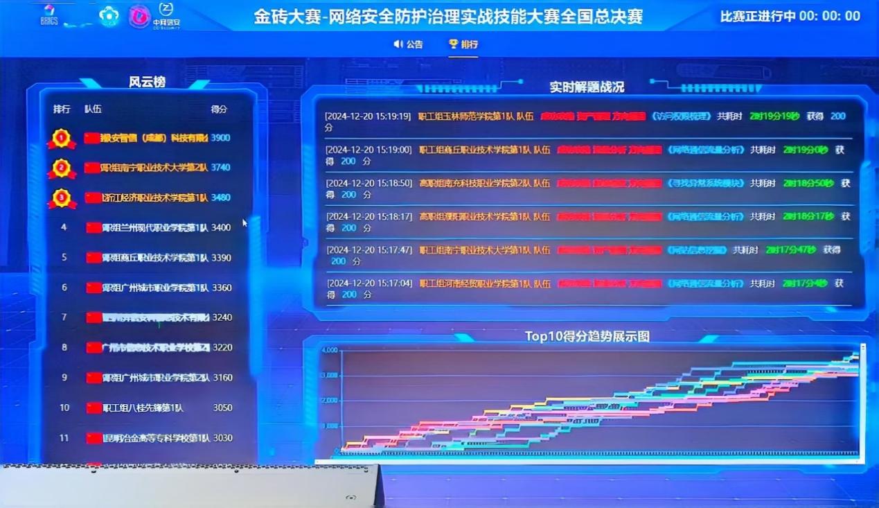 12月19日,全国总决赛在广西大学举办,来自全国各地共计115支参赛队(本科组29队、高职组49队、中职组12队、职工组25队)同台竞技?!袄贾菹执耙笛г旱?/span>1队”最终在全国总决赛的舞台上,凭借对网络安全防护治理的深刻理解和丰富的经验积累,成功应对了多个复杂多变的挑战,在比赛中脱颖而出,荣获高职组一等奖。