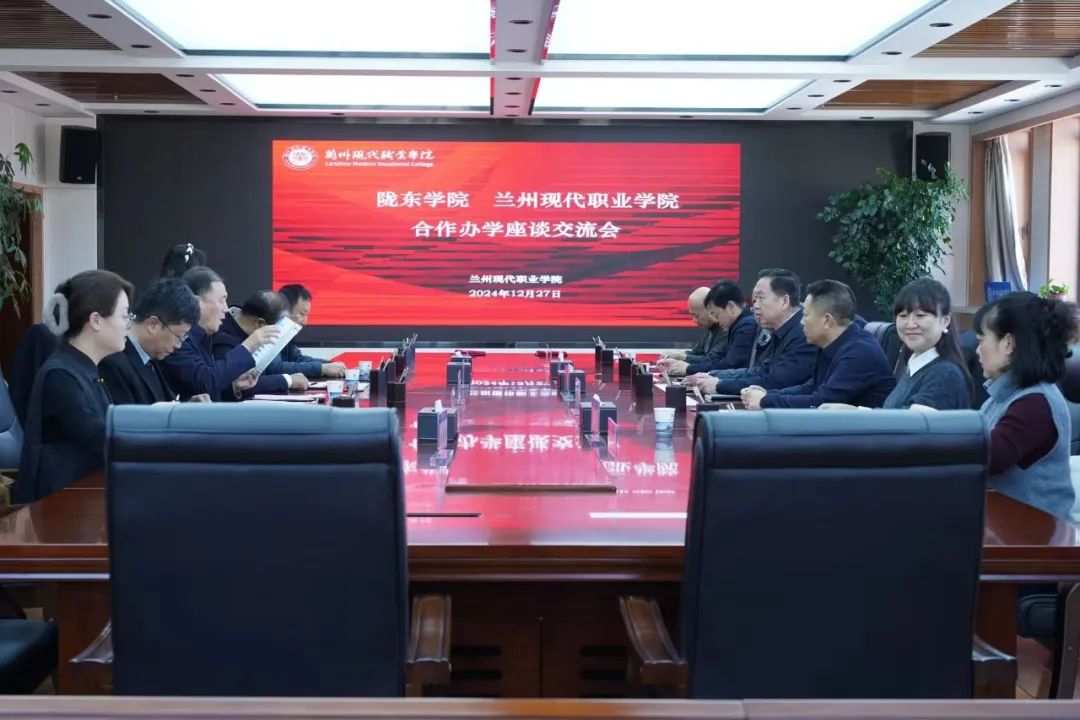 学院对刘万锋校长一行的到来致以诚挚欢迎,并表示,陇东学院是一所扎根黄土高原、传承南梁精神的高校,近年来办学成果显著,为区域经济社会发展贡献智慧与力量,赢得了广泛社会赞誉。陇东学院刘万锋校长对我院近几年在职业教育领域所取得的成果给予高度肯定。他指出,此次两校签约合作办学,旨在深化校际协同发展,实现资源共享,协同提升学生综合素质,期望双方未来筑牢互信根基,秉持优势互补理念,创新工作机制,探索人才培养新模式,努力成为省内高等院校合作办学的范例,为促进全省高等教育事业发展做贡献。
