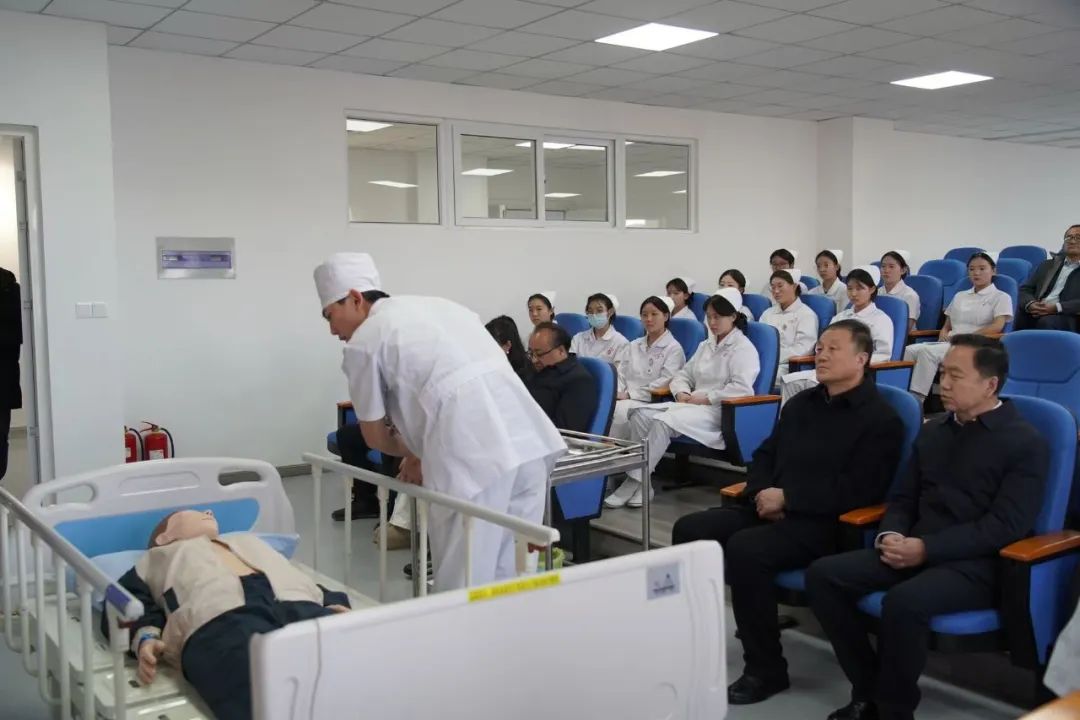 会后,刘万锋校长一行在学院领导陪同下,参观了卫生健康学院萤烛之光护理实训基地、生命科学馆、佛慈中药材产业学院以及农林科技学院、旅游航空学院实训基地。学院省级护理技能大赛优秀参赛团队利用模拟人向在场参观人员生动展示了心肺复苏的操作流程,充分展现了我院医学类学生扎实的急救知识、技能功底以及良好的专业素养。参观过程中,陇东学院领导一行对学院专业建设和实训基地给予充分肯定,提出未来在更多专业领域开展多维度合作的希望。
