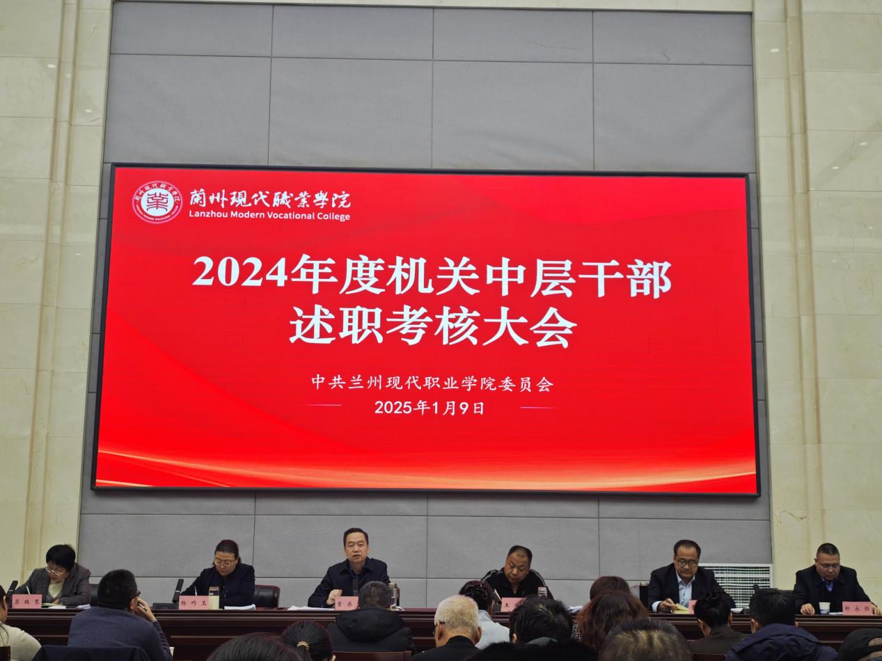 1月9日,兰州现代职业学院在办公楼一楼报告厅召开2024年度机关中层干部述职考核大会。学院领导班子、机关中层干部、自设机构负责人和各处室代表参加会议。学院党委书记曾乐强同志出席并主持会议。