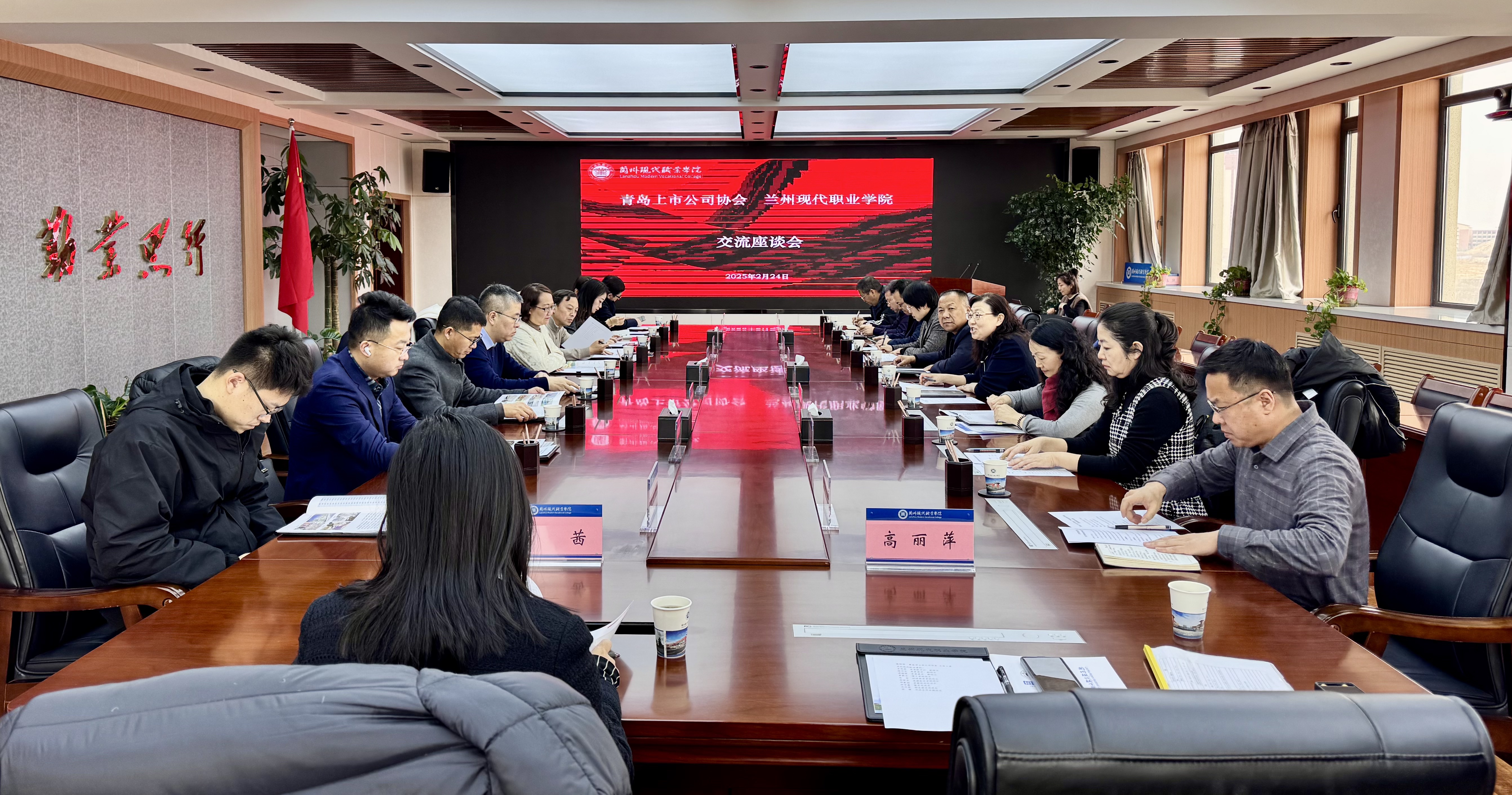 会上,学院领导首先对青岛市上市公司协会及上市企业代表的莅临,表示了诚挚欢迎与衷心感谢。随后,学院领导详细介绍学院建设历史、发展现状、专业特色和毕业生就业态势,同时还分享了学院近年来产教融合、校企合作成果以及新一轮“双高建设”推进情况。接着,青岛市上市公司协会副秘书长杨茜介绍了协会的基本建设情况及在促进校企合作交流、规范行业发展等方面所发挥的重要作用。各上市企业代表也依次介绍了各自企业运营情况和人才需求。双方均表达出携手建立校企常态化就业联动机制,深化合作、协同育人,促进产教融合高质量发展,实现资源共享、优势互补的强烈意愿。