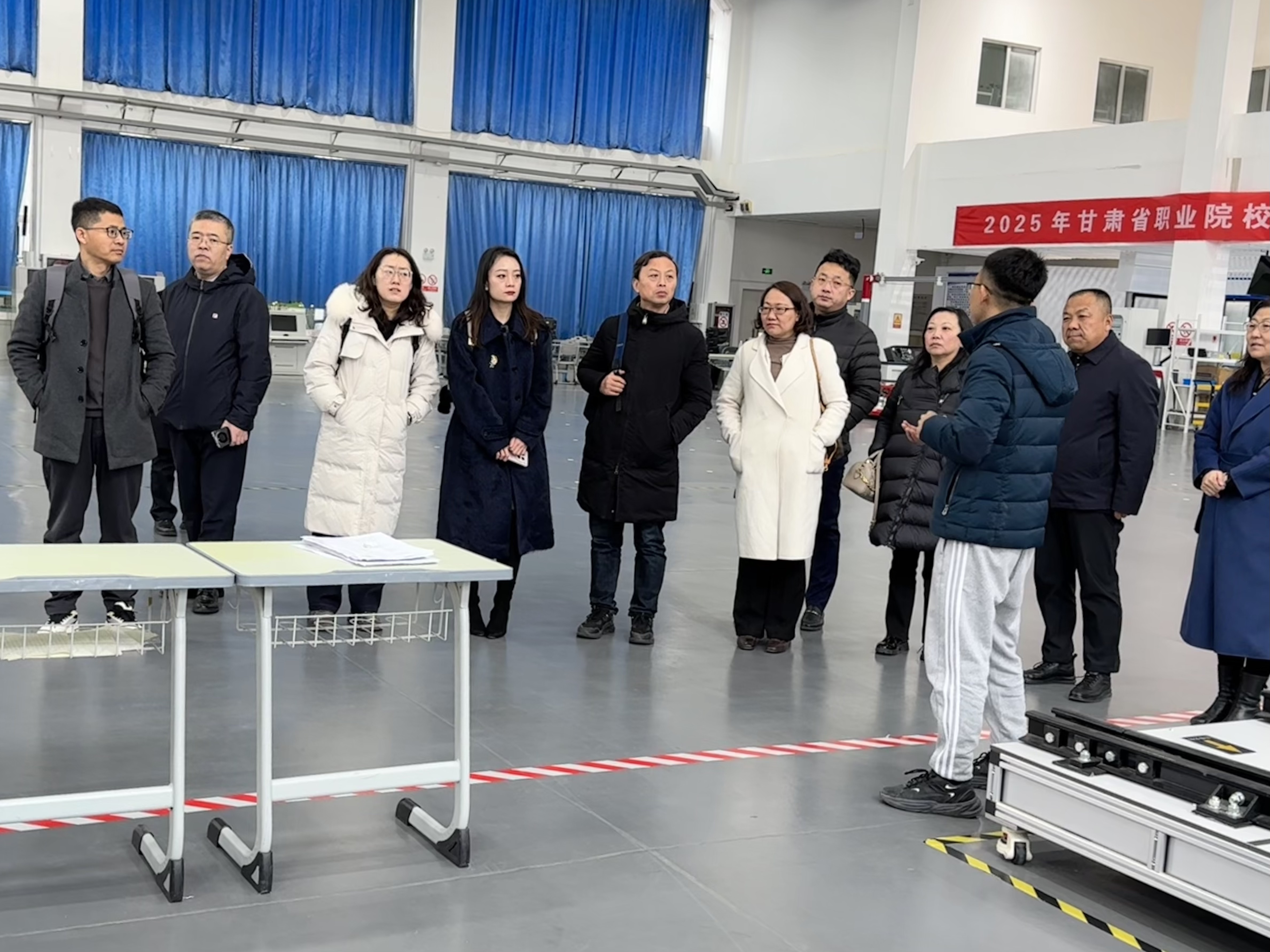 会前,在学院领导陪同下,青岛市上市公司及上市企业代表一行实地参观了城市建设学院轨道交通实训基地、旅游航空学院航空实训基地、理工学院新能源汽车实训基地、数控实训基地以及财经商贸学院京东产业学院。