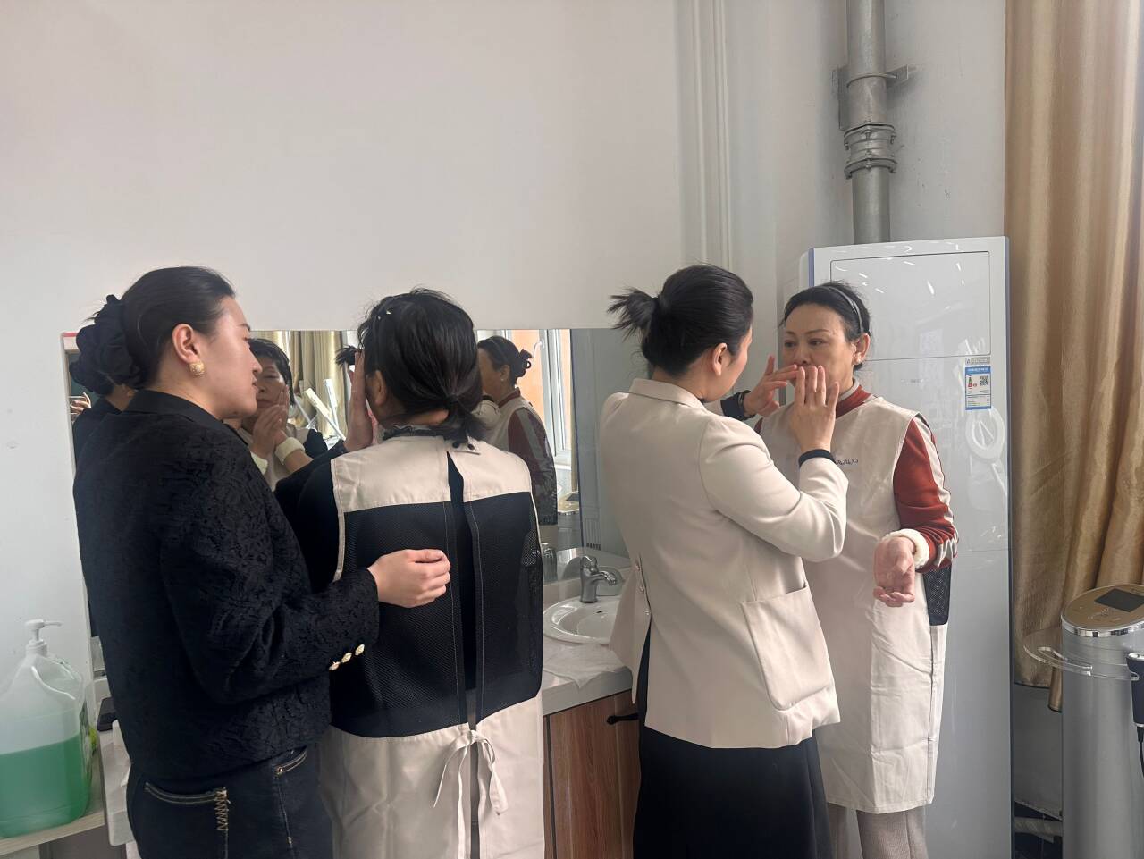 本次庆祝活动特别邀请了润芳可(上海)生物科技有限公司的美容护肤专家蔡云雪女士,为女教工们带来了一场别开生面的美容护肤公益讲座。蔡女士从皮肤管理体系、护肤产品选择以及科学的护肤方法等方面进行了深入浅出的讲解。她强调,科学的护肤不仅能有效改善肌肤问题,还能提升个人自信和魅力。在讲座中,蔡女士还分享了许多实用的护肤小技巧,让在场的女教工们受益匪浅。讲座结束后,活动进入了沉浸体验环节。在旅游航空学院美容护理实训室,蔡云雪女士亲自示范了如何通过科学美容观进行护肤保养。女教工们积极参与,亲身体验了专业美容护理的全过程。现场气氛活跃,大家在轻松愉快的氛围中,不仅学到了实用的美容知识,还增进了彼此之间的交流和友谊。