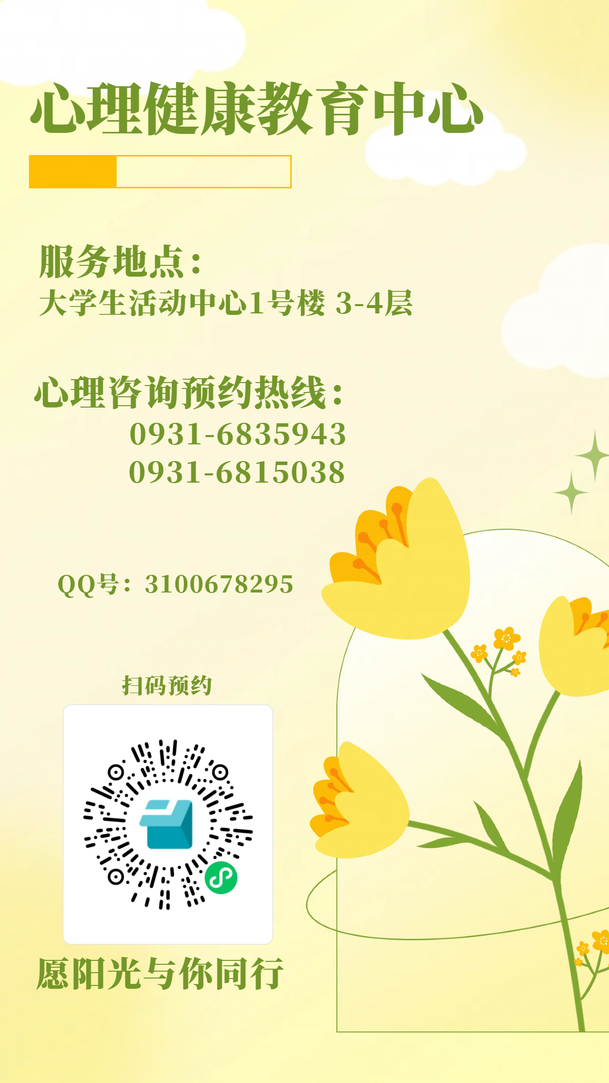 晨光熹微处,春色正悄然。新的学期如春风拂面,带来无限生机与希望。春种一粒粟,秋收万颗子。愿每一位兰现学子在这美好的季节里,以梦为马,不负韶华,既有“大鹏一日同风起”的壮志,亦存“知不足者好学”的谦逊;既有“春风得意马蹄疾”的欣喜,又有“天生我材必有用”的豁然,勇敢追逐自己的梦想,精心呵护心灵的沃土,面对挑战时,勇敢而不失从容;遇到困难时,坚持而不失希望,保持积极乐观的心态,拥有坚韧温暖的内心,用勤奋和健康书写属于自己的精彩篇章。新学期,“心”起点,在这扬帆起航的路上,兰州现代职业学院心理健康教育中心愿为你们保驾护航!