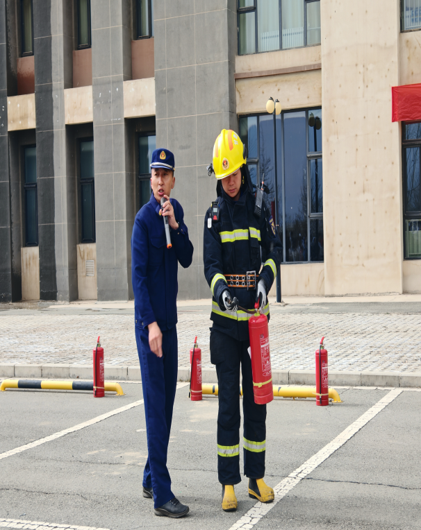 在灭火器使用演示现场,消防员分解演示“提、拔、握、压”四步操作法,并进行了油盆灭火实战,消防员逐一纠正持瓶角度过陡、站位距离过近等常见错误。