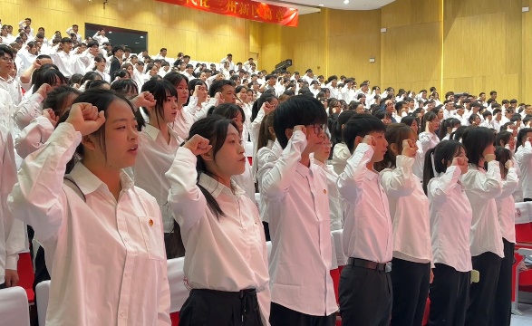 在2025年新团员入团仪式上,首先宣读了新发展团员名单,各二级学院团总支书记向新团员代表郑重颁发团徽和团员证,新团员们整齐列队,面向团旗庄严宣誓。随后,新团员代表的发言以饱满的热情表达了对加入共青团的崇高理想与坚定信念,字里行间洋溢着新时代青年的蓬勃朝气。优秀团员代表结合自身成长经历,分享了在团组织引领下的收获与感悟。
