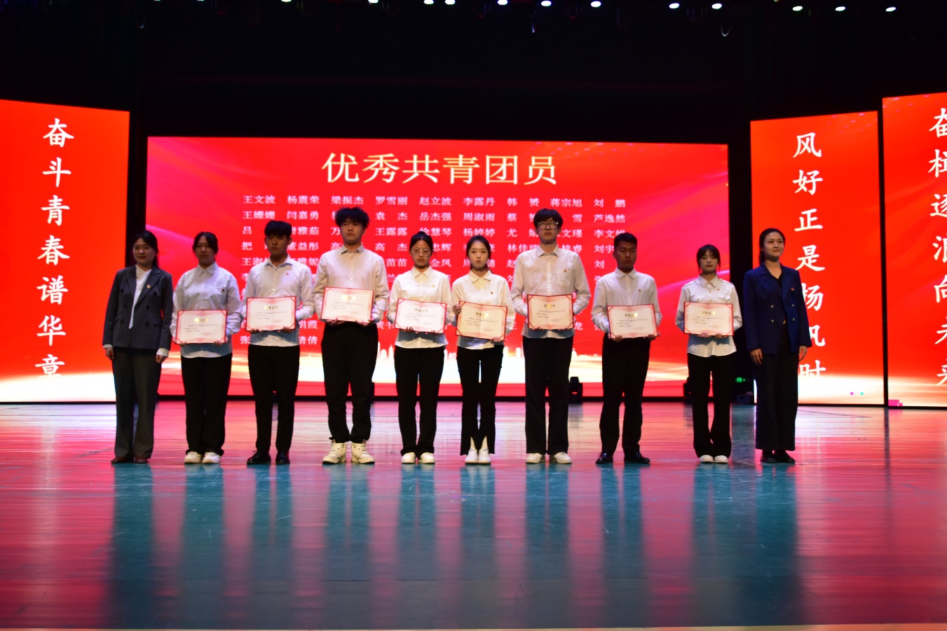 大会在庄严的国歌声中正式拉开帷幕,会上,对过去一年里表现优异的先进集体和个人进行了隆重表彰。这些受表彰对象在思想引领、社会实践、志愿服务等多个领域成绩斐然,展现出卓越风采,为广大青年树立了优秀榜样,激励着更多同学以他们为标杆,奋勇拼搏、砥砺前行。