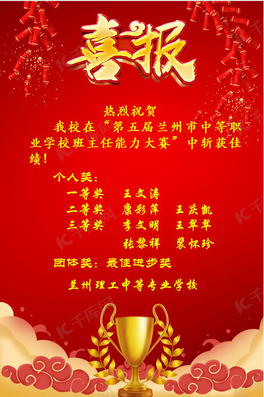 近日,2025年兰州市中职班主任能力大赛圆满结束,兰州现代职业学院理工学院 9名班主任与两市 92名选手同台竞技,7人获奖,王文涛获一等奖,康彩萍、王庆凯分获二等奖,4人获三等奖。