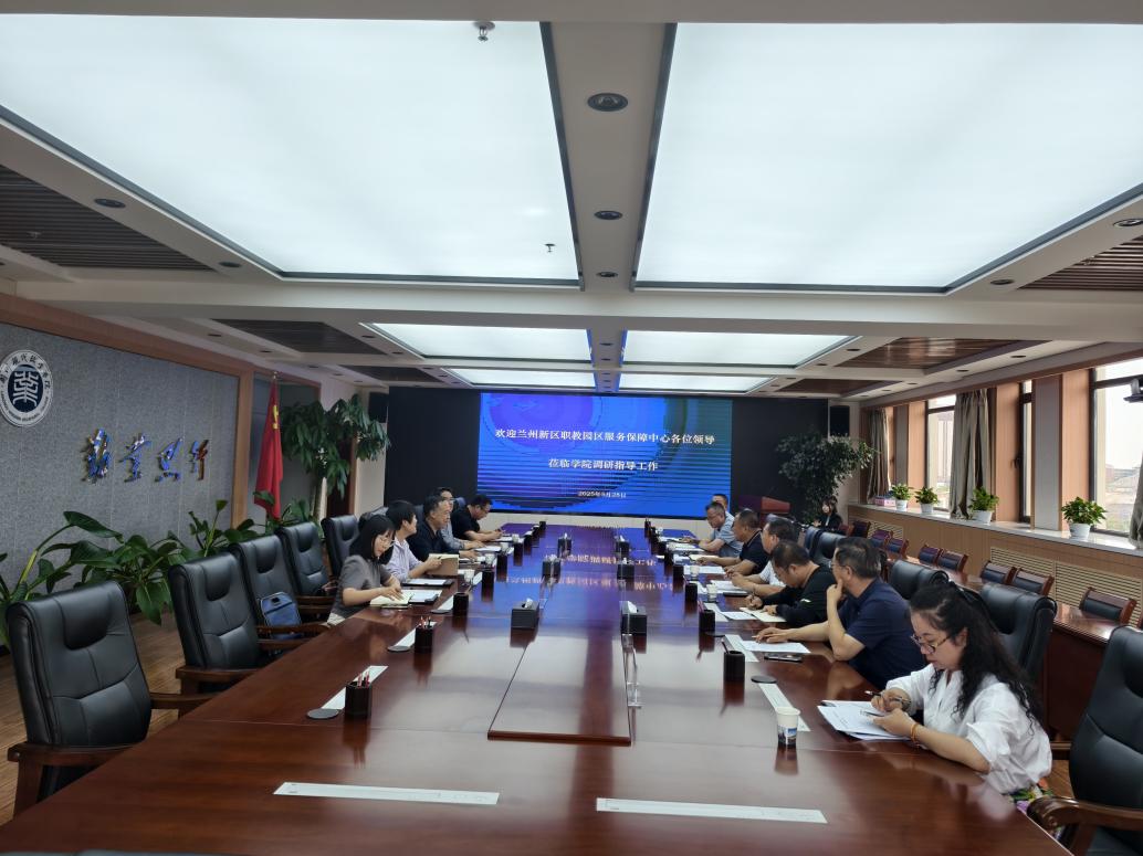 5月28日,兰州新区职教园区服务保障中心(以下简称“服保中心”)党委委员、副主任魏和平,实训部副部长田永丰、图书信息部副部长魏甲红、实训部技能培训科科长王伟等一行5人来院调研交流,就创新构建服务体系、聚力推进高质量发展等事宜开展座谈。学院领导及相关处室负责人参加会议。
