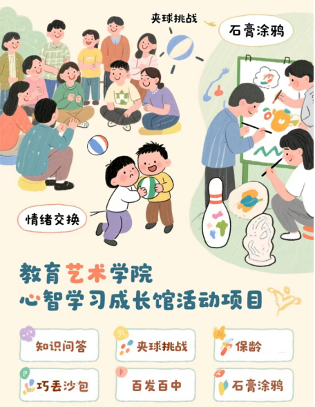 在“知识问答”中碰撞思维火花,“情绪交换”学会共情,“夹球挑战”锻炼专注力,“保龄球”击倒压力,“巧丢沙包”找回童真乐趣,“石膏涂鸦”释放创意潜能,寓教于乐,让心灵与智慧同步成长!