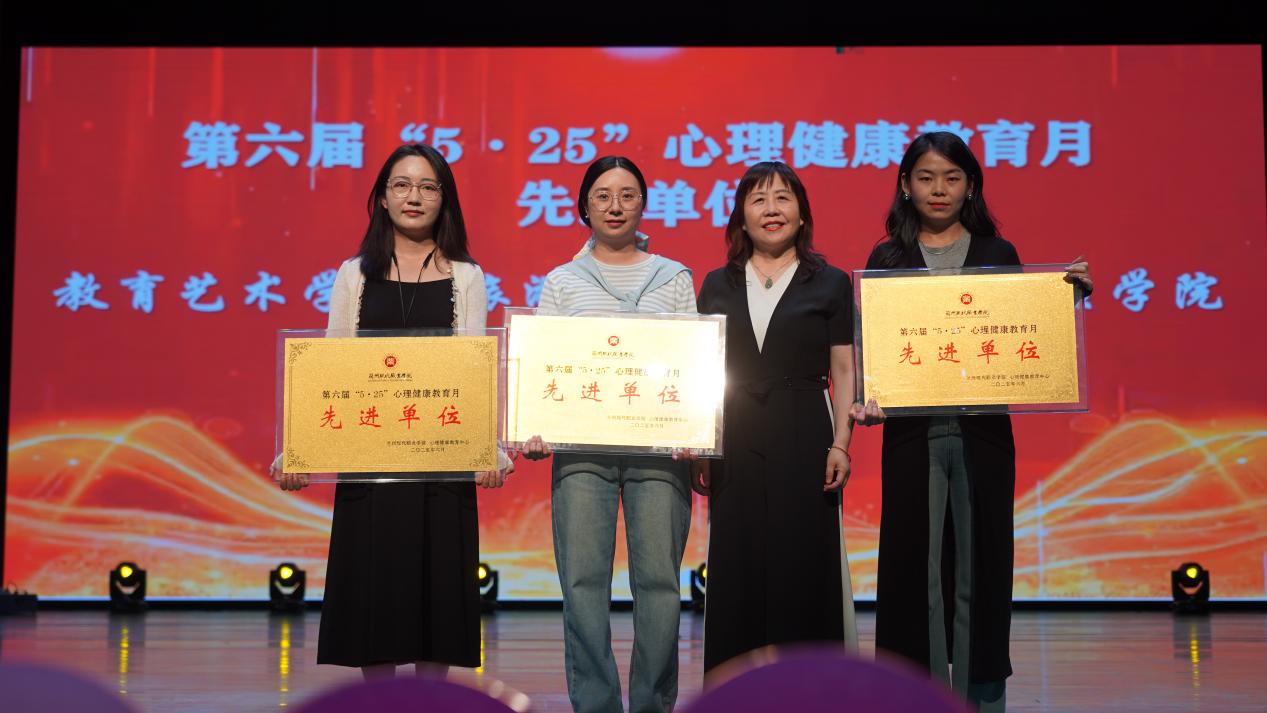颁奖仪式上,情景剧竞赛优秀指导教师、首届校园十佳心理委员和寝室信息员、个人才艺展演、阳光心理协会先进个人等代表上台领奖。学院心理健康教育中心做了活动总结,教育艺术学院辅导站专职心理老师马梅莲代表获奖单位发言,旅游航空学院“悦心之家”心理社团副社长达清蕊发言。教育艺术学院、旅游航空学院、卫生健康学院获评第六届“5·25”心理健康教育月先进单位。