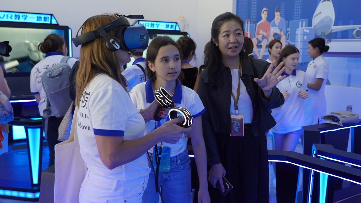 在学院领导陪同下,夏令营团先后参观了轨道交通、市政工程、航空服务等实训基地。在专业教师的讲解和指导下,营员们现场观摩了智能化教学环境,沉浸式体验了虚拟实训、模拟驾驶等现代化教学项目,切身感受到了现代职业教育教学模式的生动性和创新性。