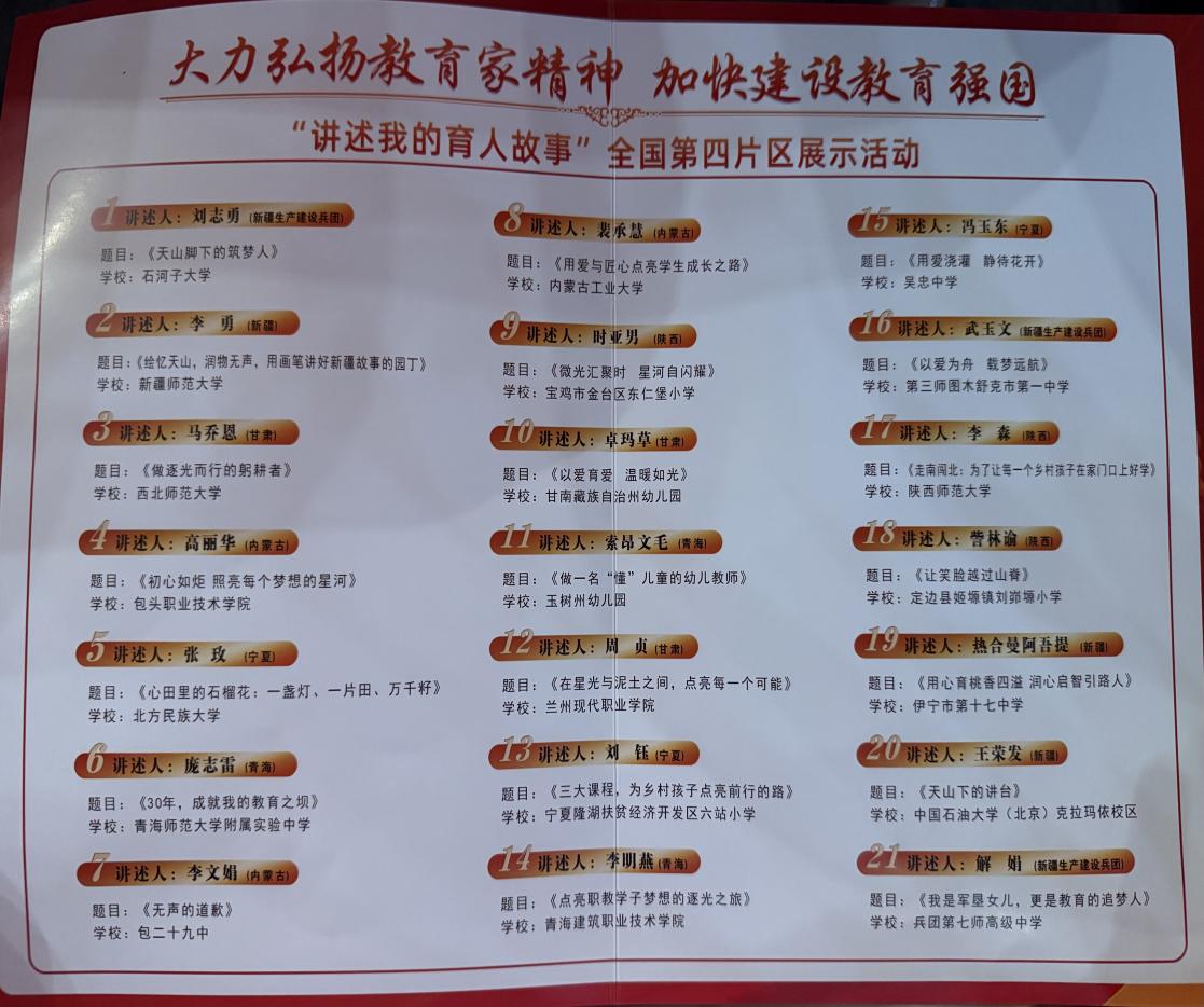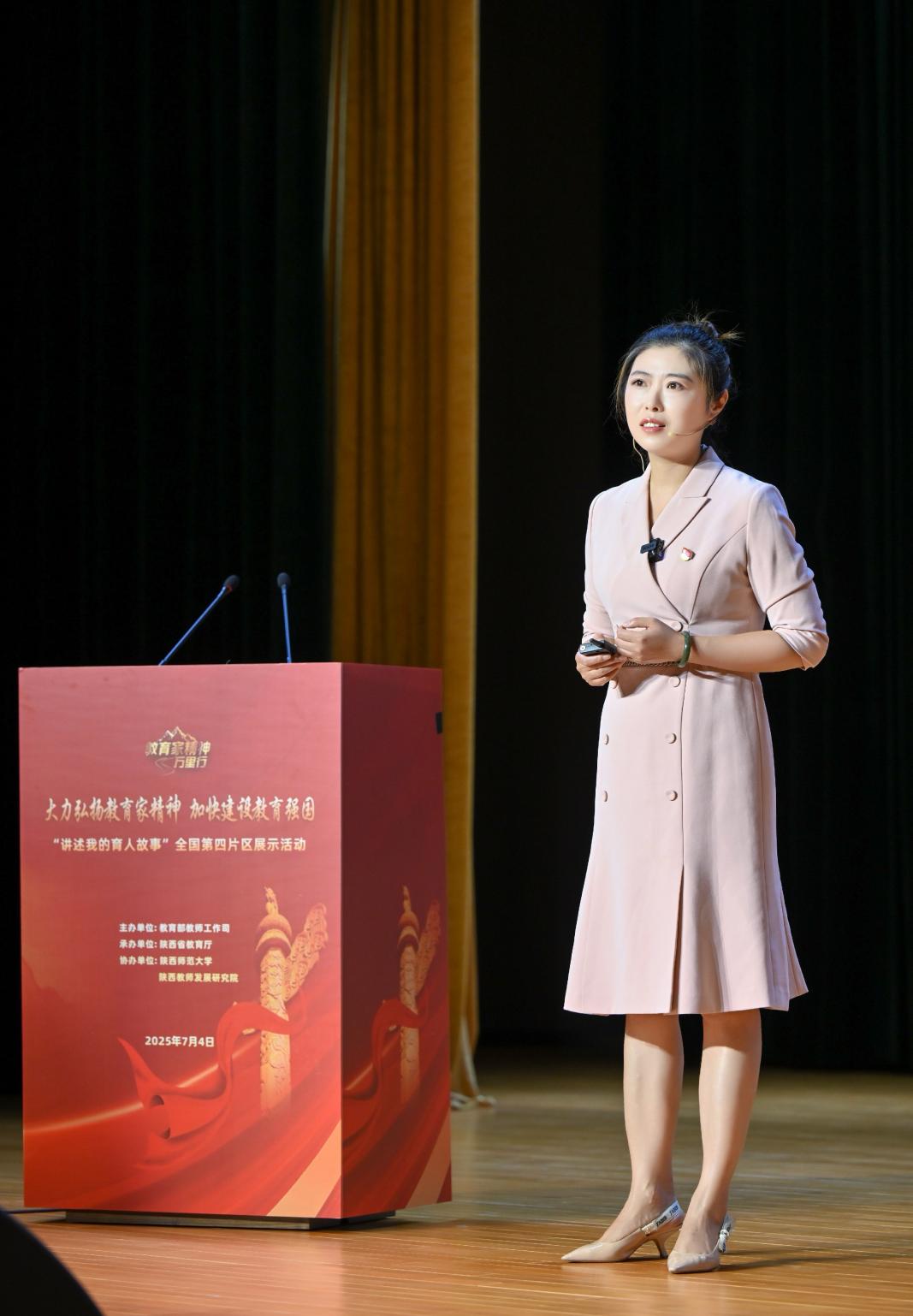 为深入贯彻习近平总书记关于教育的重要论述,落实《教育强国建设规划纲要(2024—2035年)》精神,2025 年 7 月 4 日,“教育家精神万里行丨讲述我的育人故事” 全国第四片区展示活动(陕西站)在陕西师范大学长安校区国际教育大厦圆满举行。活动汇聚陕西、甘肃等 7 地 21 名优秀教师代表,搭建起交流育人智慧、弘扬教育家精神的重要平台 。
