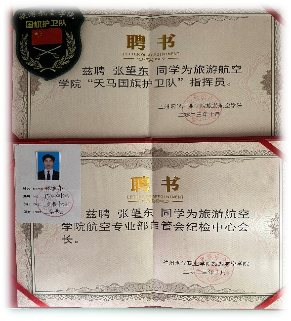 作为我院培养的优秀学子,19岁的张望东在校期间便以“全能标兵”著称。他身兼航空专业部学生自管会纪检中心会长与天马国旗班队长,在双重身份历练中锤炼才干:他参与修订《学生纪律管理细则》,推动专业部纪律评分持续提升;他创新“阶梯式训练法”,带领国旗班完成50余场升旗仪式,多次获评“优秀学生干部”。