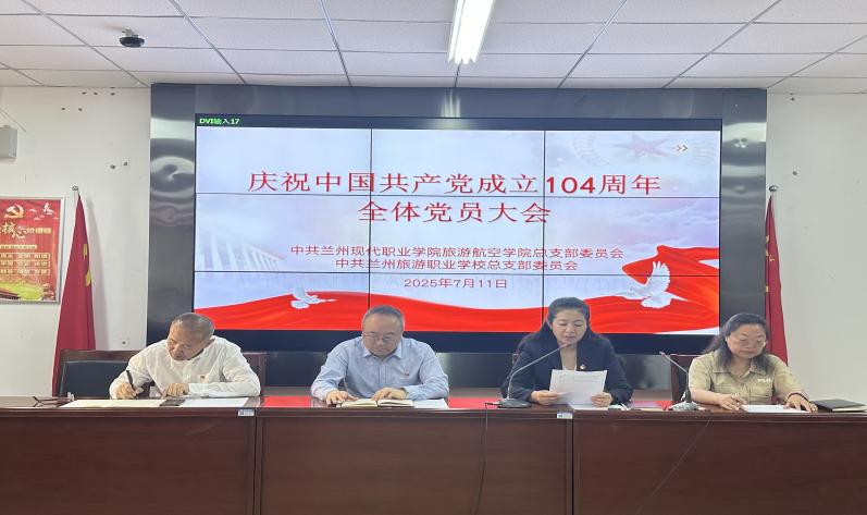 近日,旅游航空学院党总支召开庆祝建党 104 周年全体党员大会。会上,党总支书记刘京祥领学中央政治局集体学习内容,院长郑西灵领学党百年奋斗史诗,副院长郑昆聚焦中央八项规定精神纪律要求深化学习。全体党员重温入党誓词,青年党员代表重读志愿书忆初心。党总支为党员颁发政治生日贺卡与文创用品,书记总结上半年党建工作并部署下半年任务,凝聚起推动学院发展的红色动力。