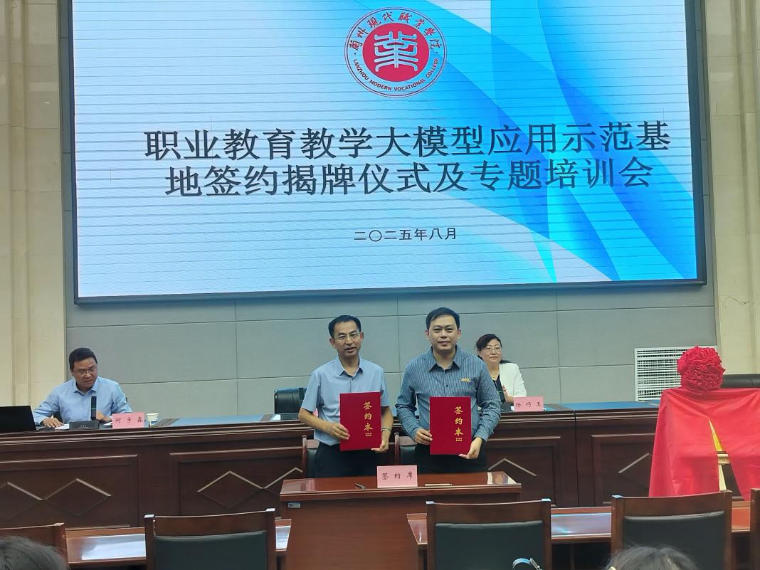 为深化职业教育东中西部协作,落实中华职教社张掖对接会签约成果,8月27日,广东科学技术职业学院计算机学院院长杨忠明教授一行莅临兰州现代职业学院,开展校际交流合作,共同为“职业教育教学大模型应用示范基地”揭牌,为两地职业教育协同发展注入新动能。