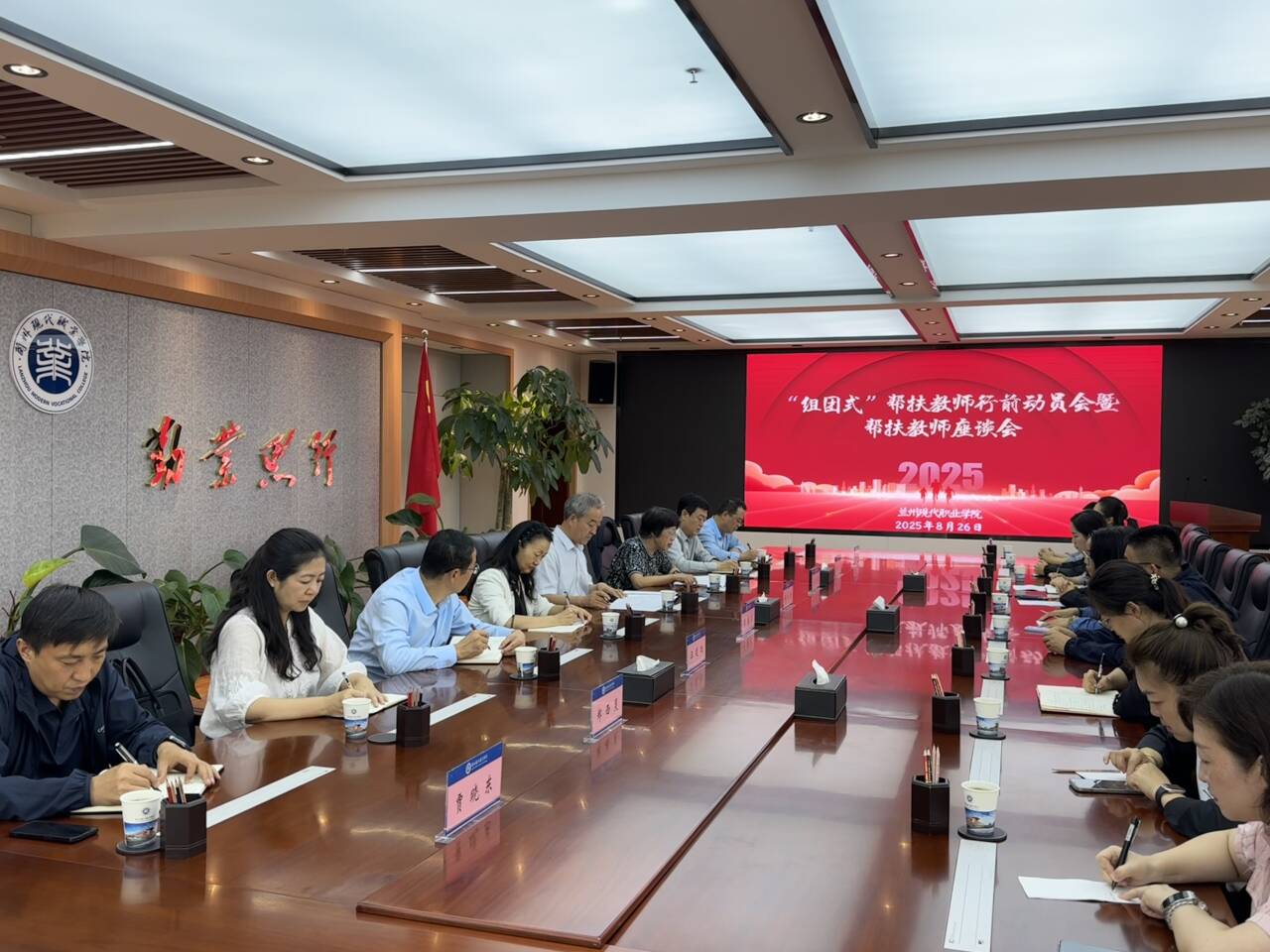 8月26日上午,我院召开“组团式”帮扶教师行前动员会暨座谈会,全面总结帮扶成果,为新一批教师践行鼓劲。学院党委副书记、院长魏永胜,党委委员、副院长苏瑞琴、各二级学院院长出席会议,第二批、第三批帮扶教师参加会议。会议由苏瑞琴副院长主持。