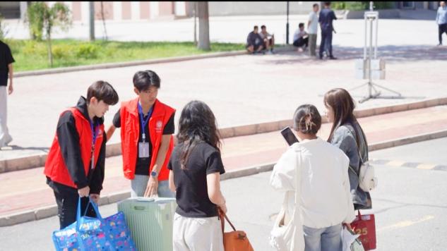 在校园门口,身穿红色马甲的志愿者们早早等候。他们热情地接过新生手中沉重的行李,一路相伴,为新生引路,耐心解答关于校园布局、报到流程等各种疑问,用真诚的笑容和“定制化”的暖心服务,让初来乍到的首批本科生第一时间感受到学院的重视与温度。