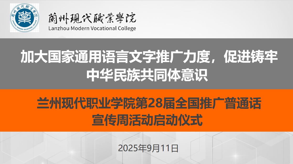 9月11日,兰州现代职业学院在一楼报告厅举行第28届全国推广普通话宣传周启动仪式,为9月15日至21日的推普周预热,落实甘肃省相关通知精神。