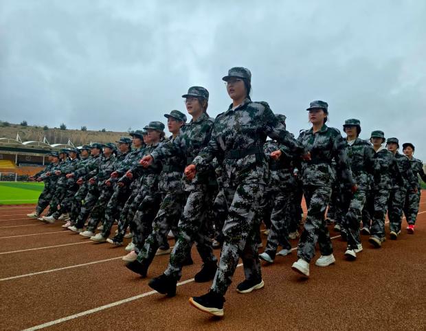 军训是锤炼意志、涵养品格的重要课堂,更是新生融入校园的“第一课”,对塑造纪律意识、培养团队精神具有深远意义。在教官严格指导下,各项训练扎实推进。站军姿时,新生如松如柏,任凭汗水流淌仍纹丝不动,彰显顽强意志;队列训练中,齐步走、正步走步伐铿锵、动作规范,将纪律性与团队协作精神展现得淋漓尽致。