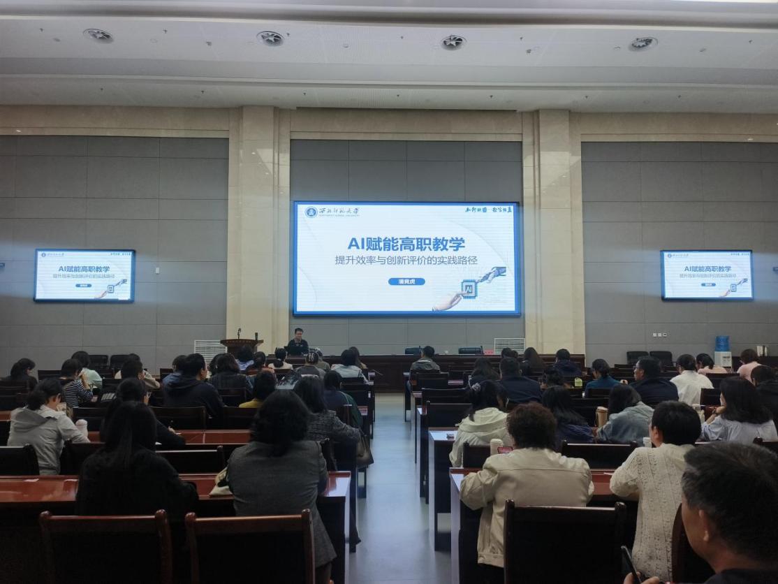活动特邀西北师范大学潘竟虎教授作《AI赋能高职教学:提升效率与创新评价的实践路径》专题讲座,智慧树网金课咨询师马成智开展AI教学中心实操训练,推动教师掌握智能教学工具,创新课堂教学模式。此次活动为提升公共基础课育人实效、推动教育教学数字化转型提供了有效支撑。