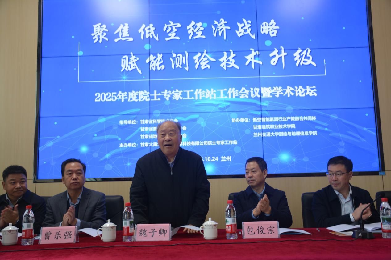 2025年10月24日,甘肃大禹九洲空间信息科技有限公司院士专家工作站2025年度工作会议暨“聚焦低空经济战略赋能测绘技术升级”学术论坛在兰州召开。中国工程院院士、西安 706 研究所研究员魏子卿、甘肃省科学技术协会党组书记、第一副主席包俊宗、兰州现代职业学院党委书记曾乐强亲临指导,甘肃省自然资源厅国土测绘处处长鲍立尚、甘肃省测绘地理信息学会理事长曹建君、甘肃省地理信息产业协会会长杜玉祥等领导莅临会议并分别致辞;70余位行业专家学者及单位代表参会,共探低空经济与测绘地理信息产业融合发展之路。