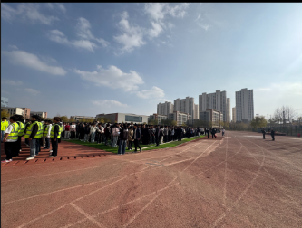 演练前,学院围绕火灾逃生关键要点开展专题安全教育,明确“捂鼻低姿、有序撤离、不拥不挤”等核心要求。演练中,全体师生迅速响应,在教师引导下沿指定线路快速疏散至足球场,各班即时清点人数上报;消防救援车辆同步抵达模拟火场开展处置,整个过程紧张有序、高效顺畅。