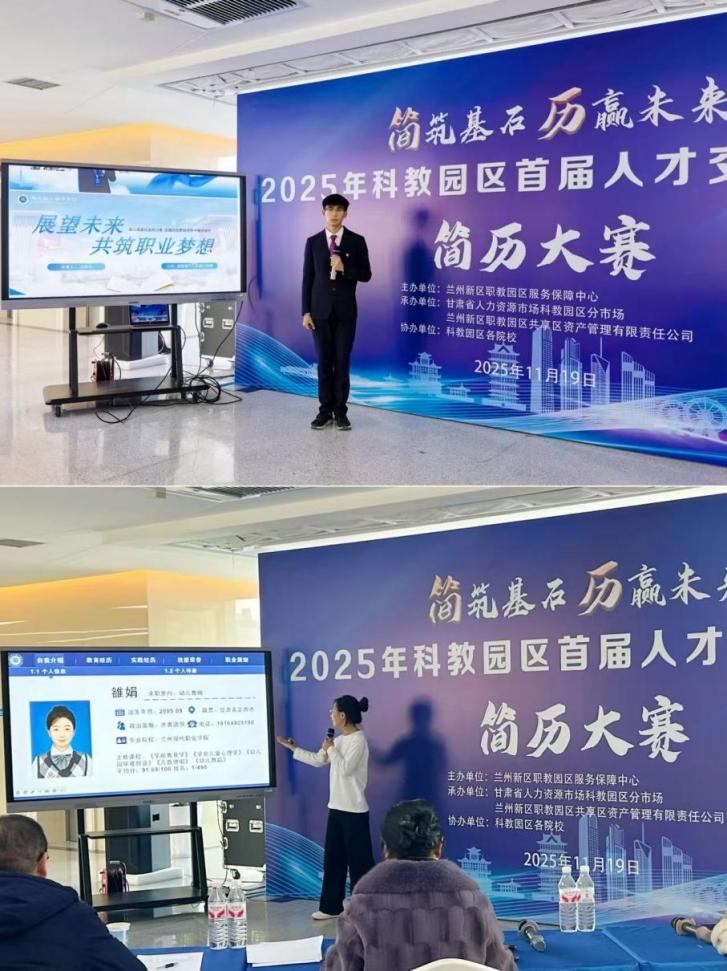 招聘活动现场还举办了兰州新区科教园区大中专院校学生简历大赛总决赛。经过前期选拔,学院共有2名毕业生的作品入围现场决赛。他们在赛场上充分展示了扎实的专业功底与良好的综合素养,体现了兰现学子的昂扬风貌。